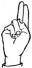 На ћирилици написано БОРИСАВА ЗЕЧЕВИЋ састоји се из 15 слова [?]. Исписано ћириличном једноручном азбуком за глувонеме: